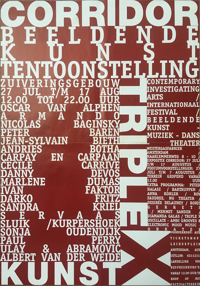 Wednesday 27th of July 1994 -> Wednesday 17th of August 1994 in Westergasfabriek, Polonceaukade 27, Amsterdam, Netherlands. | ||