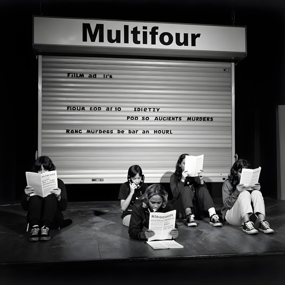 An AI image for my 'Multifour' performance. The description above was the prompt for the generated image. An image generated by an AI Machine Learning Model Property of the artist. | ||