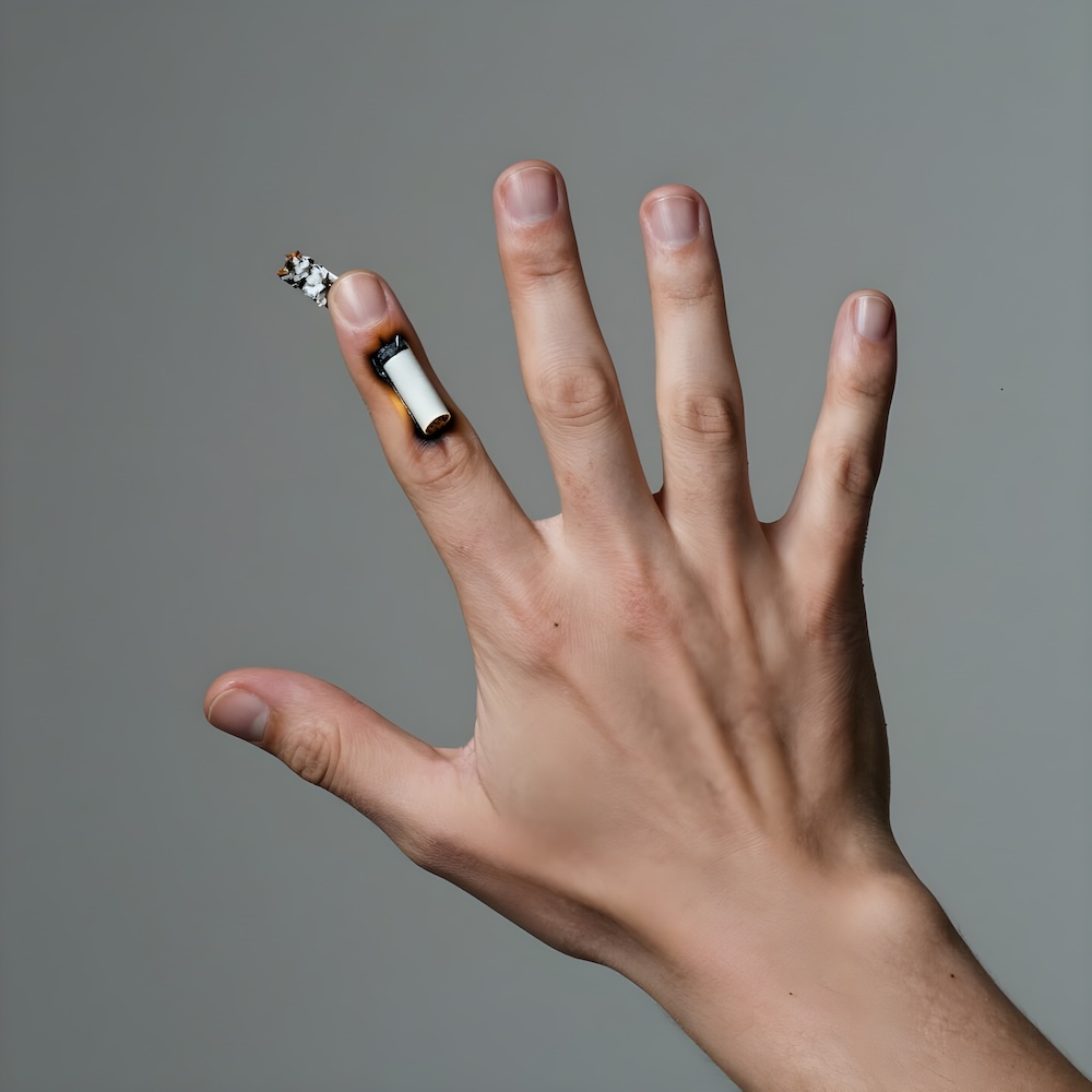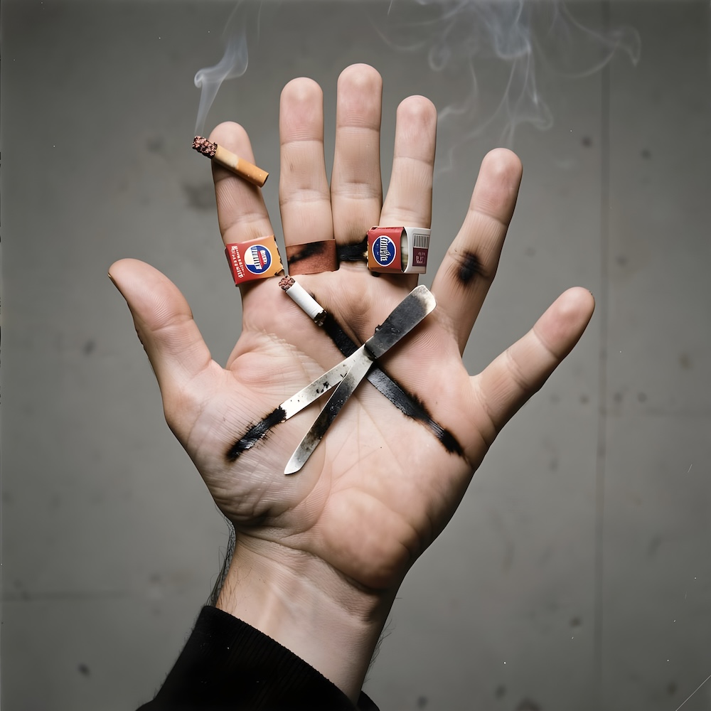 Performance art - 20 August 1980 - With a ‘Lucky Strike’ cigarette I burned the so-called ‘vital line’ in my hand several times. Afterwards I was not satisfied with the result and I cut across it with a razorblade.