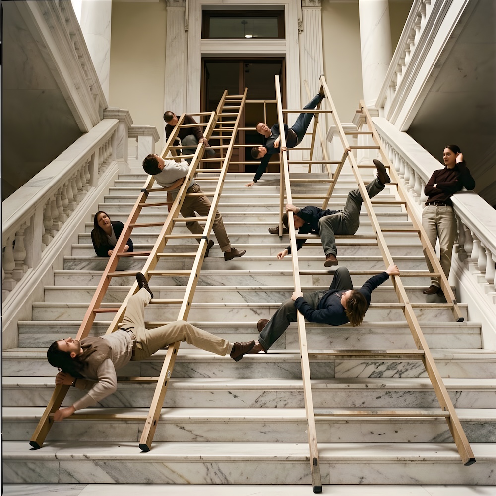 An AI image for my 'Ladder - 2' performance. The description above was the prompt for the generated image. An image generated by an AI Machine Learning Model Property of the artist. | ||