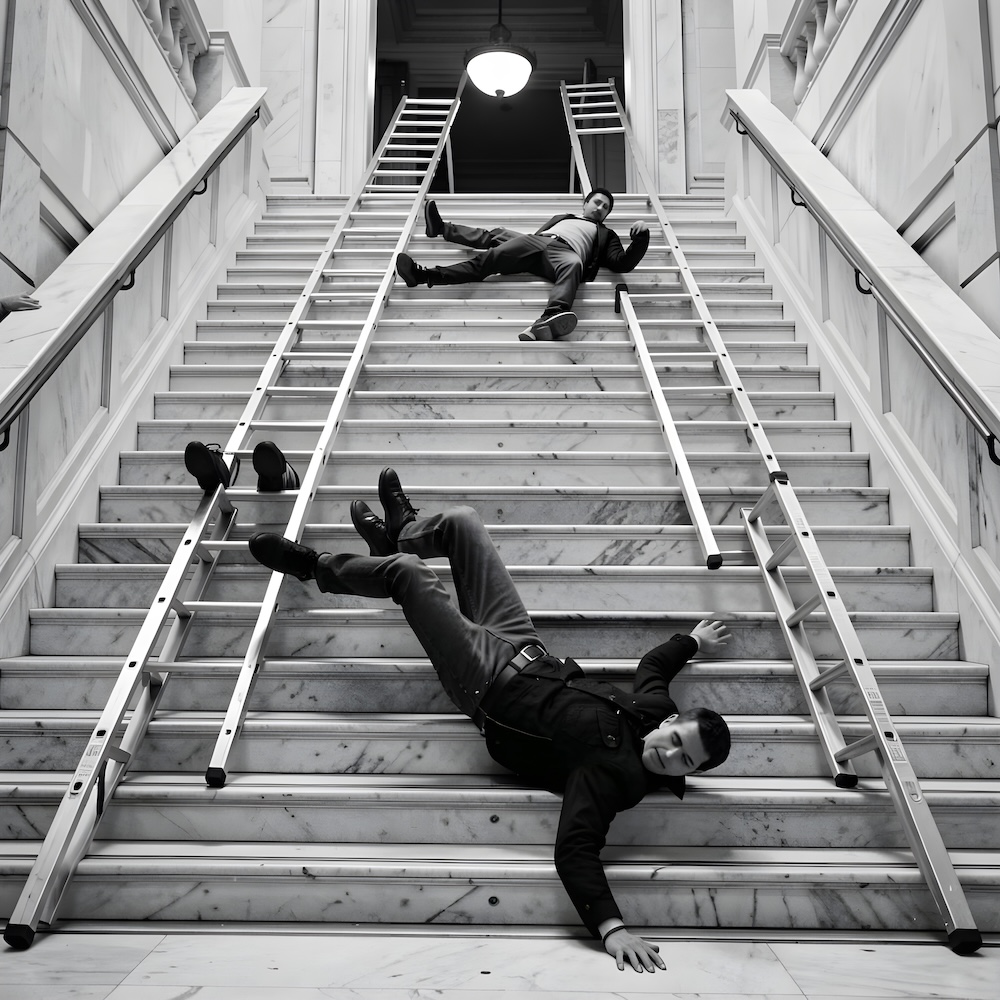 Performance art - 5 September 1980 - I placed my self-made ladders on the marble staircase and then fell from the stairs 6 times.
