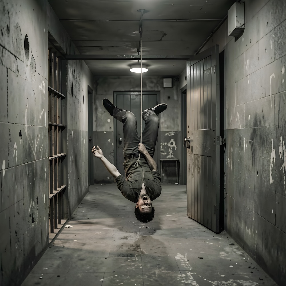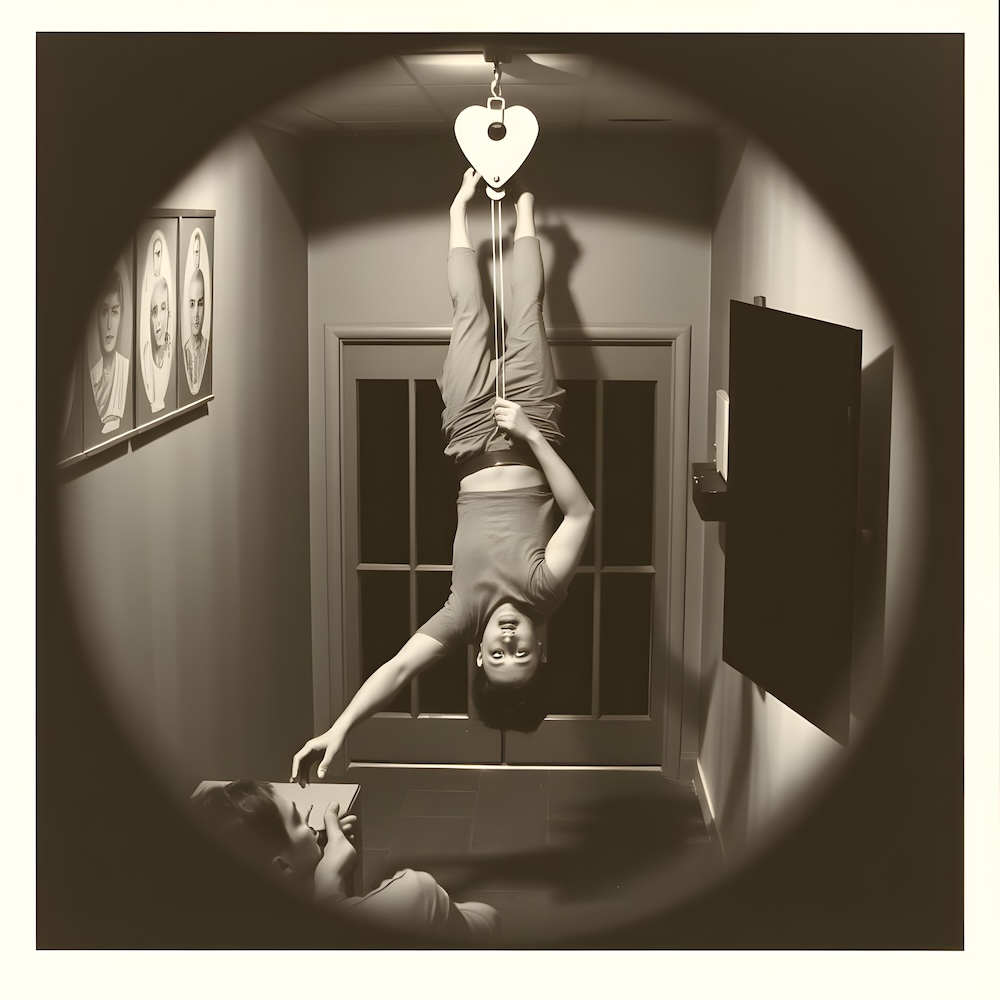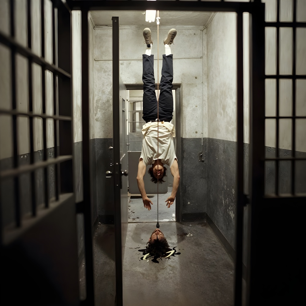 Performance art - 13 September 1980 - The performance happened in a cell of an old prison and the audience had to look through the spy-hole to see anything. While the Simpletones played their music I tried to pull myself upside down all the time by use of a pulley. After about one and a half hour the door of the cell opened and I threw up in the hallway.