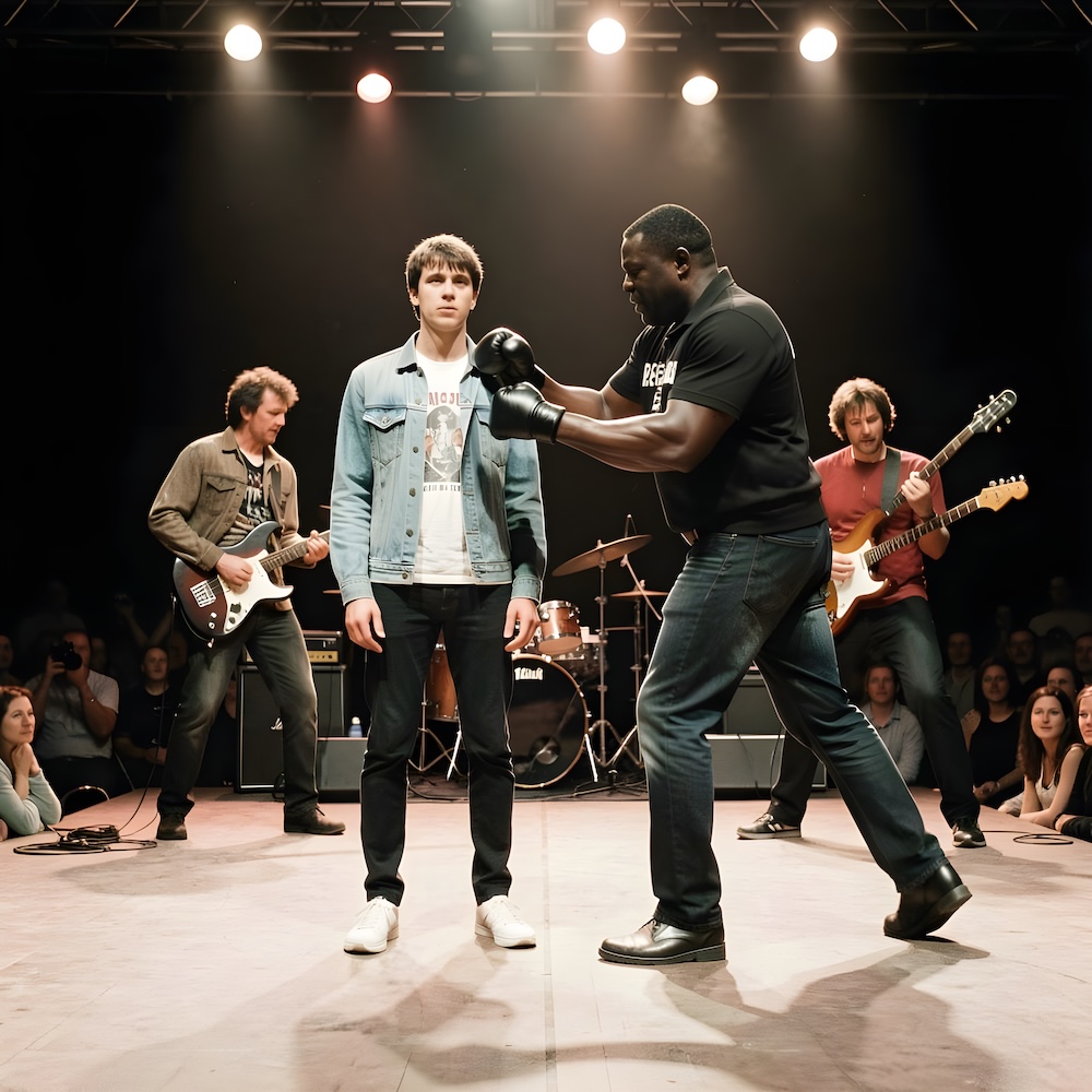 Performance art - 29 November 1980 - While the Simpletones played their music I was beaten around by a specially hired professional black heavyweight boxer on a stage without any resistance of me.