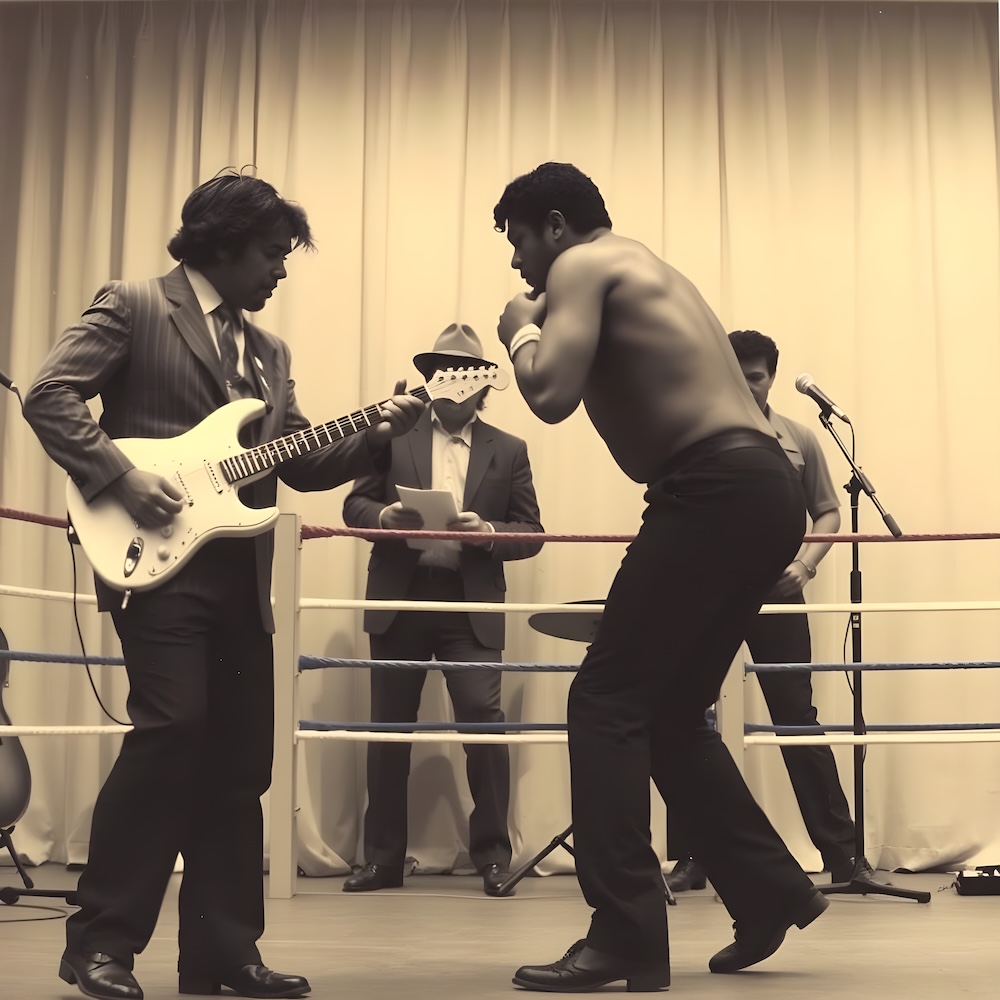 An AI image for my 'This Week I Was Beaten Up For Love - 2' performance. The description above was the prompt for the generated image. An image generated by an AI Machine Learning Model Property of the artist. | ||