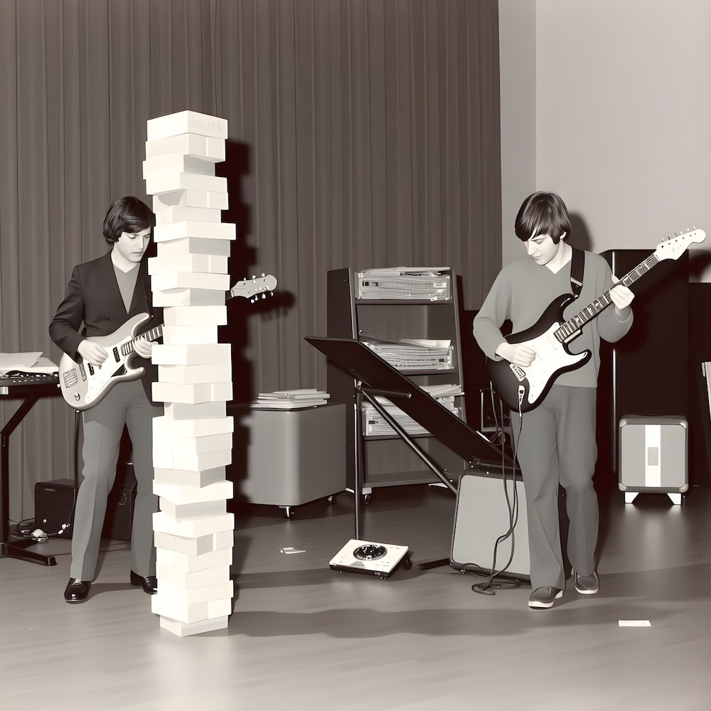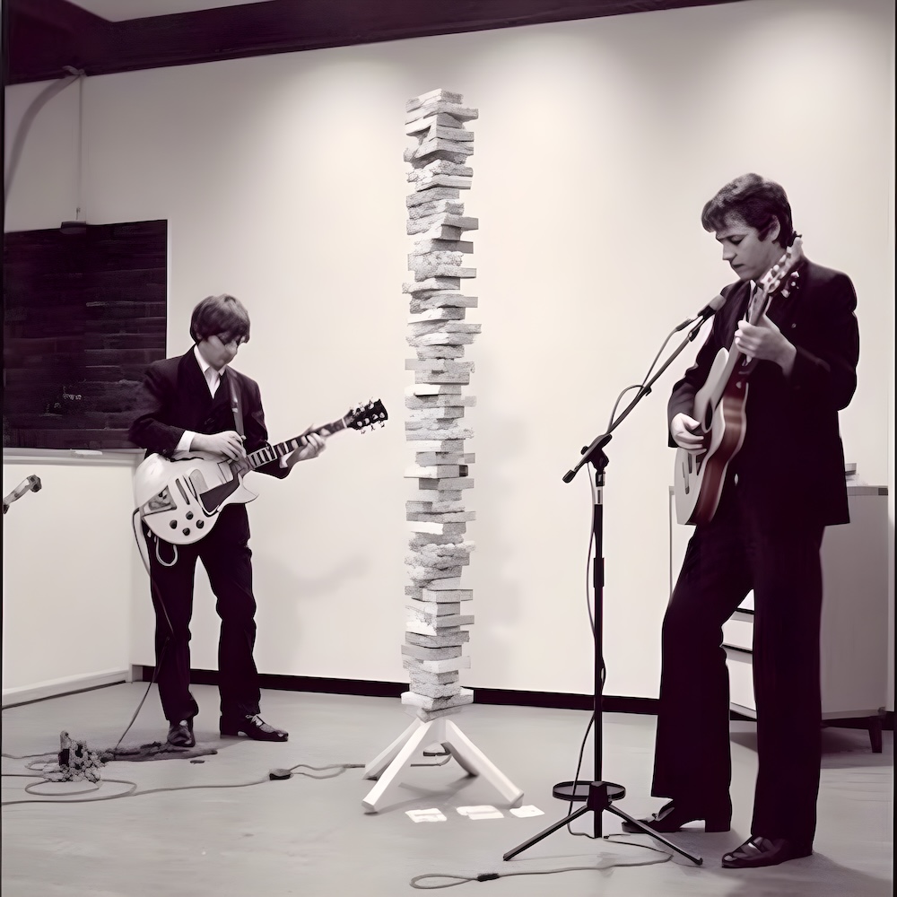 Performance art - 29 November 1980 - While the Simpletones played their music I tried over and again to build a tower as high as possible with wooden blocks.