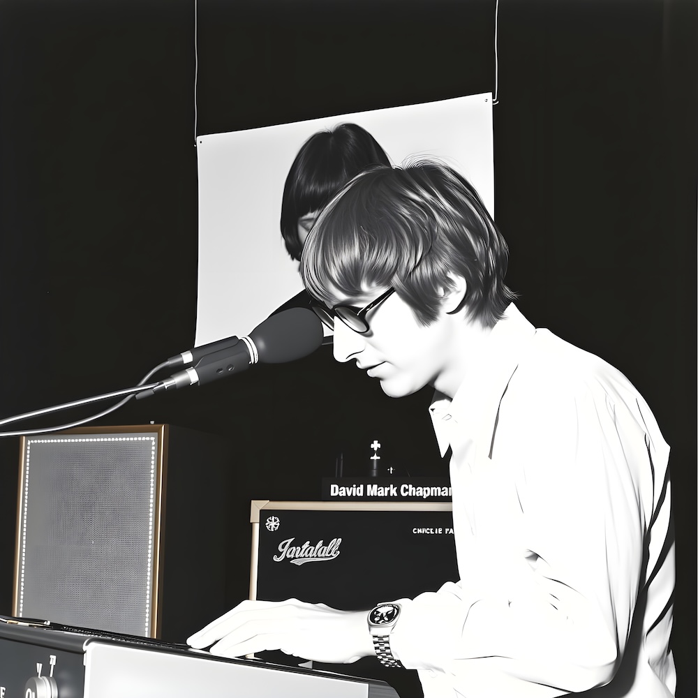 An AI image for my 'David Mark Chapman - 1' performance. The description above was the prompt for the generated image. An image generated by an AI Machine Learning Model Property of the artist. | ||