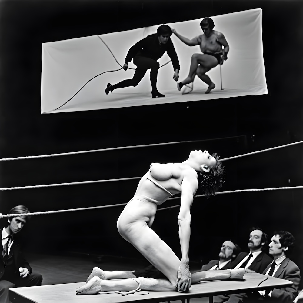An AI image for my 'Lift-Off' performance. The description above was the prompt for the generated image. An image generated by an AI Machine Learning Model Property of the artist. | ||