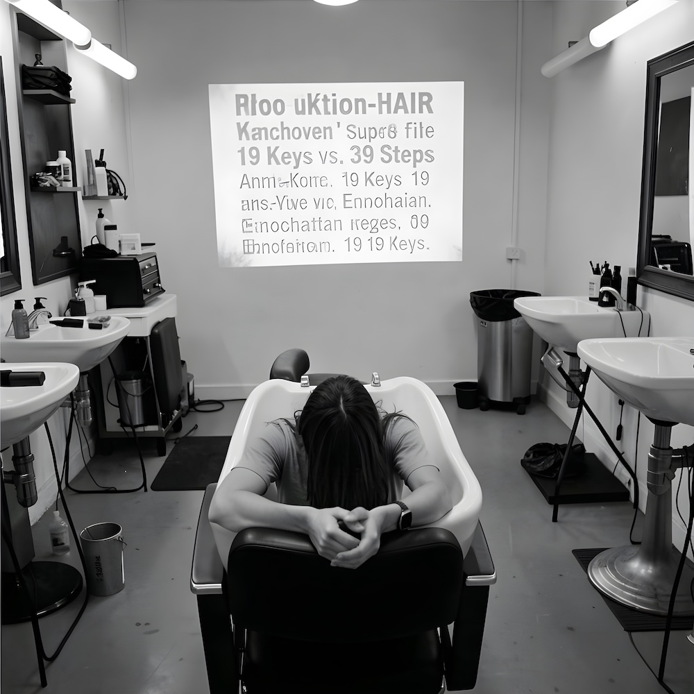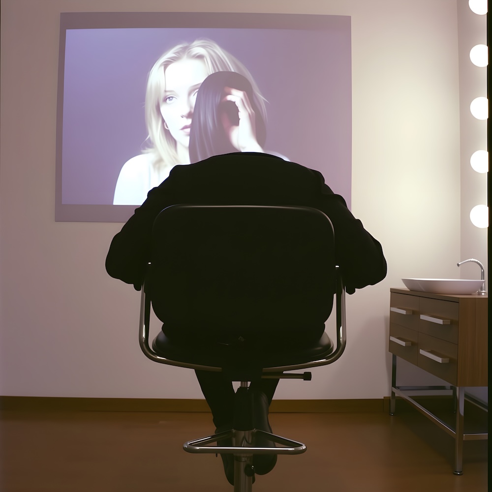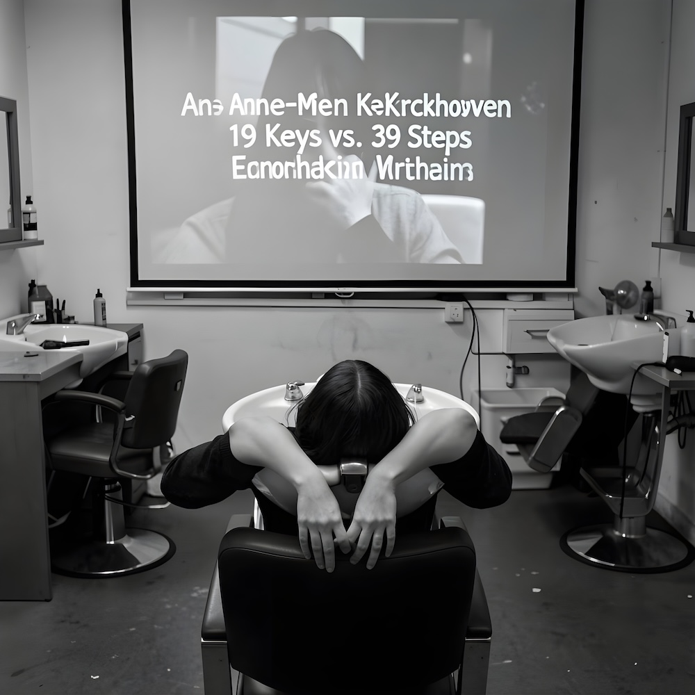 Performance art - 20 June 1983 - I was sitting backwards in the chair of the hairdressing salon of ProduKtion-HAIR handcuffed. While Anne-Mie Van Kerckhoven’s Super8 film ‘19 Keys vs. 39 Steps’ was projected I recited the 19 Keys in Enochian with my head bent over in the sink.