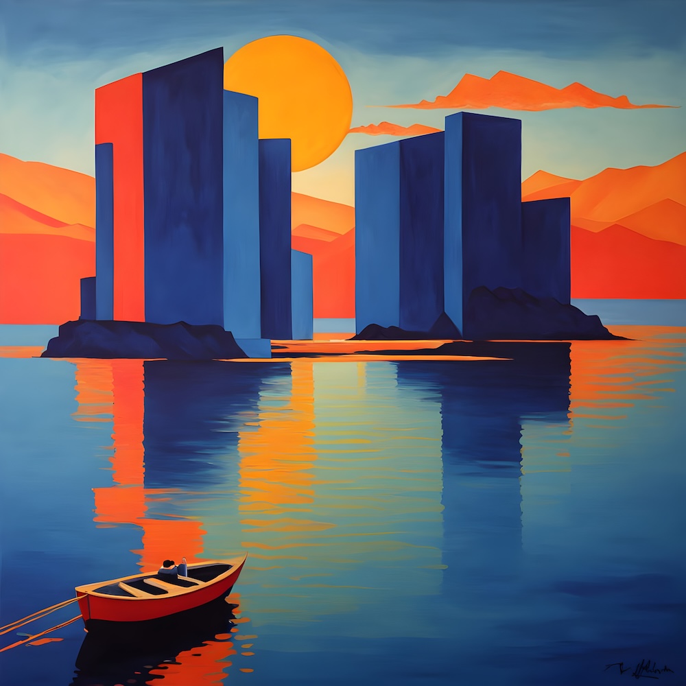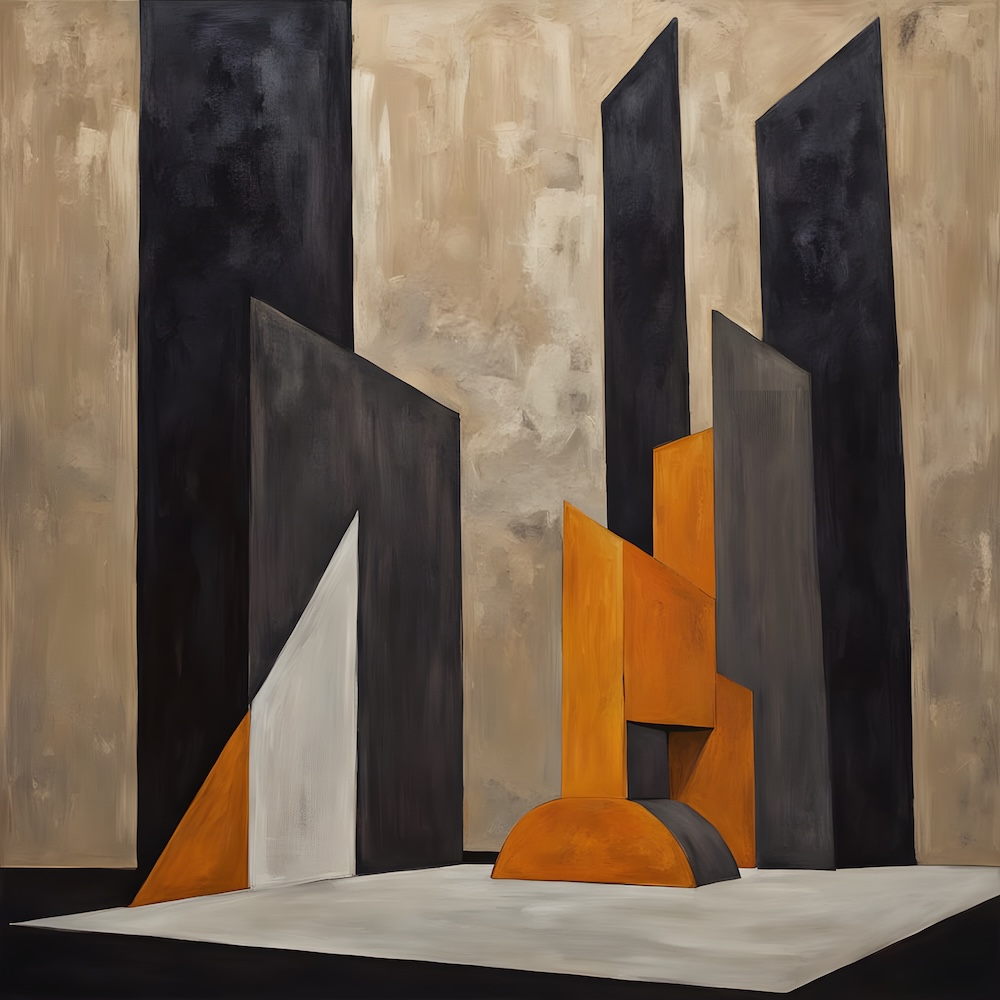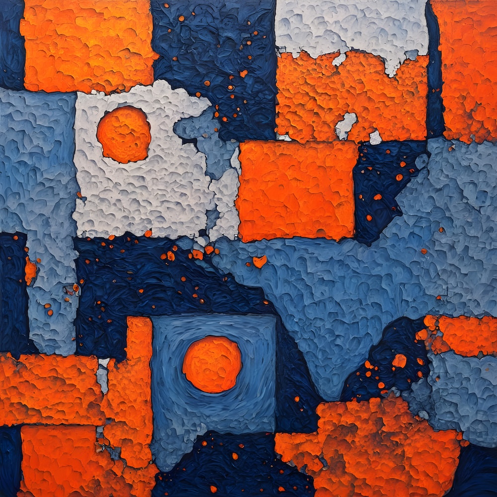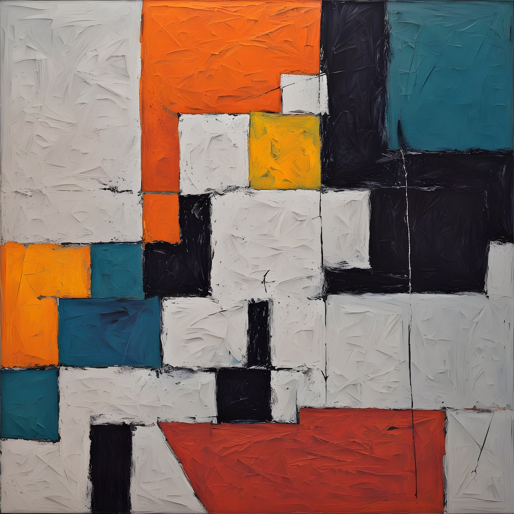These works are inspired by the catalogue of the exhibition 'TURNER 1775-1851' of J. M. W. Turner at the Tate Gallery, London from 16 November 1974 until 2 March 1975. The titles are fed into an AI Image Generator Machine Learning Model with prompts for abstract, colourfield, brutalist, geometric paintings in hi-res images of 8000x8000 pixels. The individual pages from the list have the text from the catalogue about Turner's work. Move your mouse over an image to see the title. The catalogue was bought in a second-hand bookshop in Brussels for 4,- €.