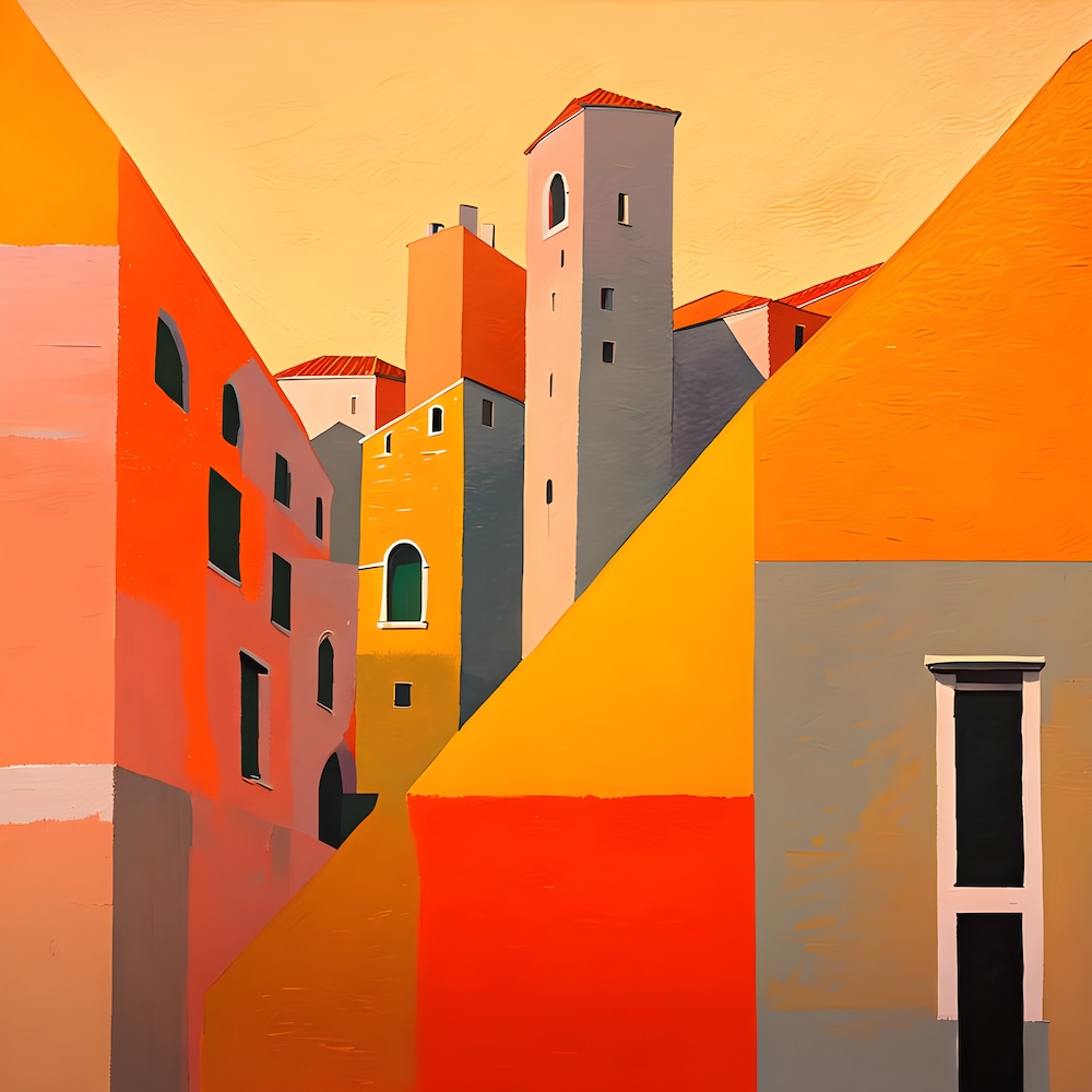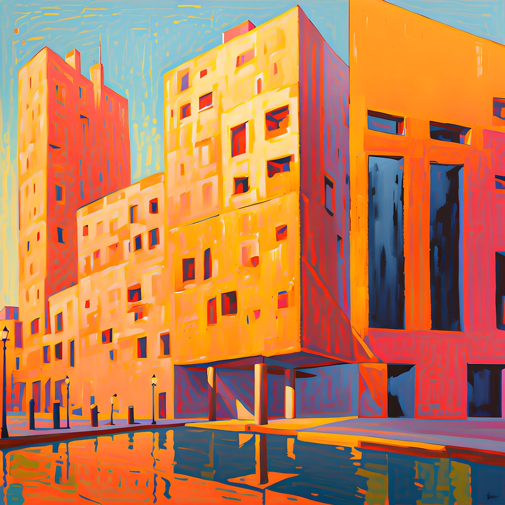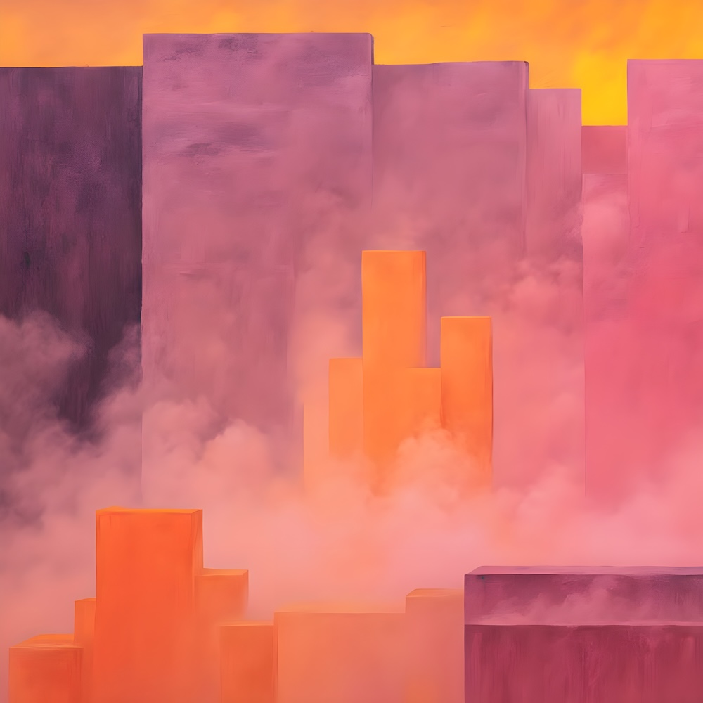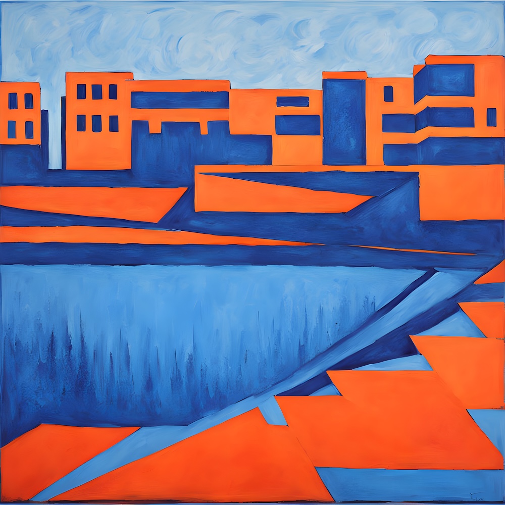 These works are inspired by the catalogue of the exhibition 'TURNER 1775-1851' of J. M. W. Turner at the Tate Gallery, London from 16 November 1974 until 2 March 1975. The titles are fed into an AI Image Generator Machine Learning Model with prompts for abstract, colourfield, brutalist, geometric paintings in hi-res images of 8000x8000 pixels. The individual pages from the list have the text from the catalogue about Turner's work. Move your mouse over an image to see the title. The catalogue was bought in a second-hand bookshop in Brussels for 4,- €.