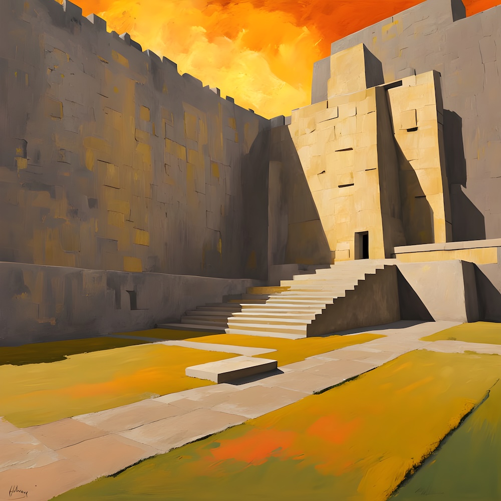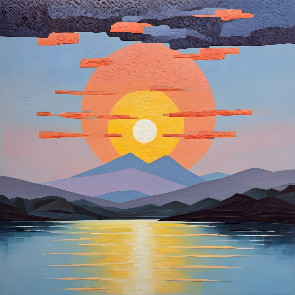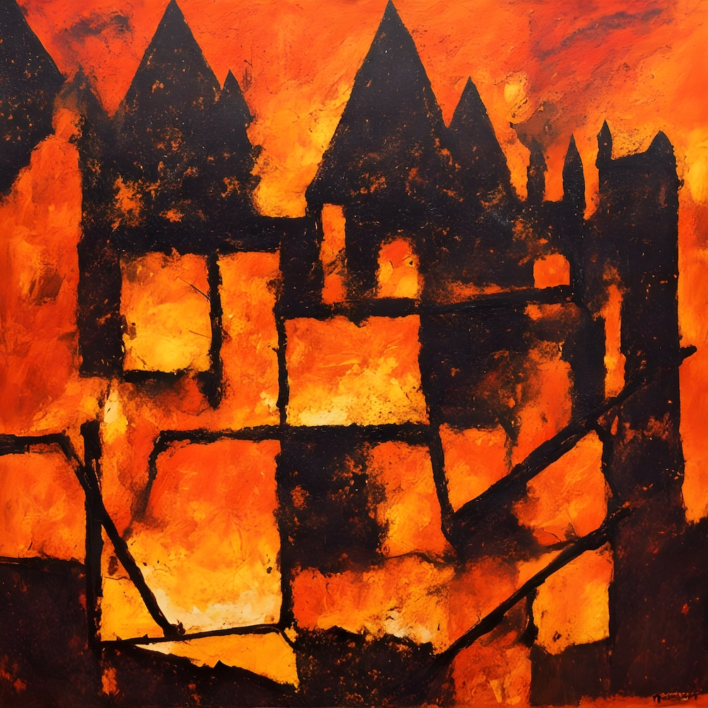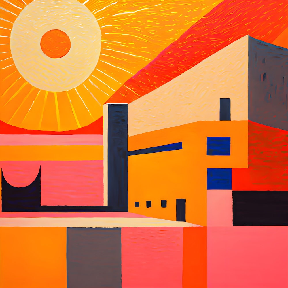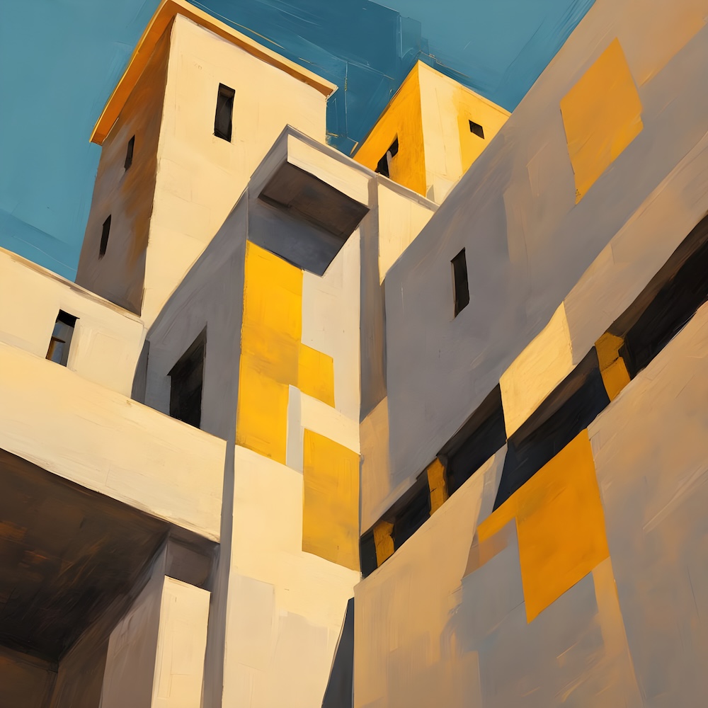These works are inspired by the catalogue of the exhibition 'TURNER 1775-1851' of J. M. W. Turner at the Tate Gallery, London from 16 November 1974 until 2 March 1975. The titles are fed into an AI Image Generator Machine Learning Model with prompts for abstract, colourfield, brutalist, geometric paintings in hi-res images of 8000x8000 pixels. The individual pages from the list have the text from the catalogue about Turner's work. Move your mouse over an image to see the title. The catalogue was bought in a second-hand bookshop in Brussels for 4,- €.