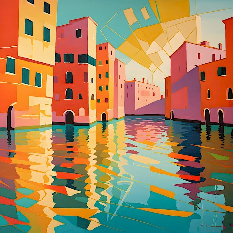 An unfinished Venetian scene in Turner's standard three-foot, four-foot size, used for some exhibited examples in 1834 and 1835 but not in the 1840s, the probable date of this picture. It is typical of a number of Turner's later works in the way in which the spectator is drawn into the picture between serried rows of staring faces, running the gauntlet, as it were, of the frenzied inhabitants of Turner's imaginative world. An image generated by an AI Machine Learning Model Property of the artist. | ||