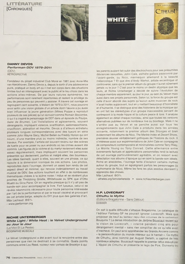 Max Lachaud in Obsküre Magazine, Tuesday 3rd April 2012, France. | |