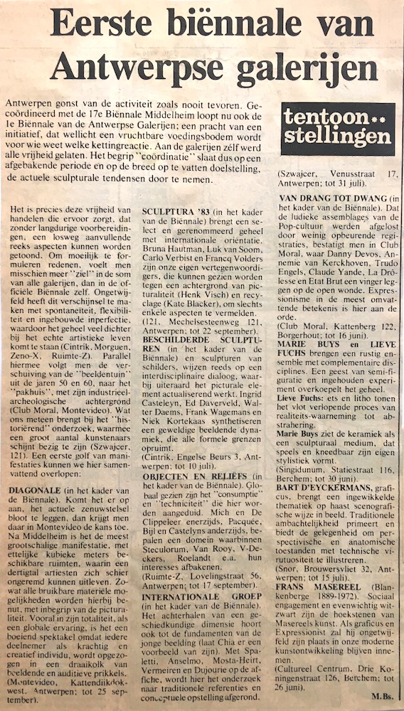 Marc Bourgeois in De Nieuwe Gazet, Thursday 16th June 1983, Belgium. | |