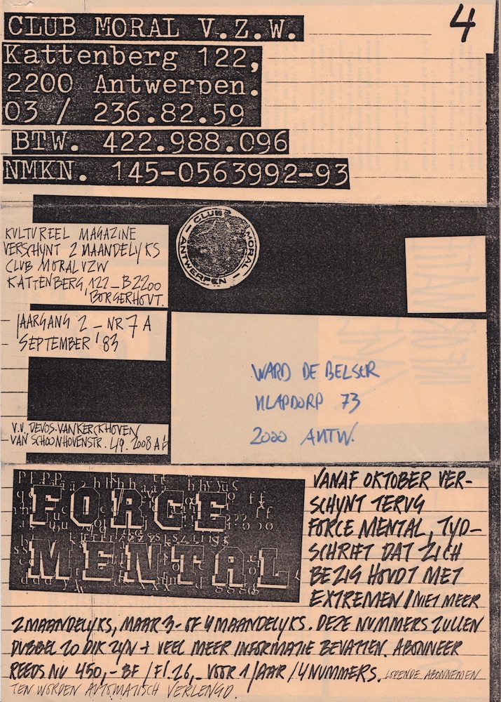 Friday 16th of September 1983 -> Wednesday 2nd of November 1983 in Club Moral, Kattenberg 122, Antwerpen, Belgium. | ||