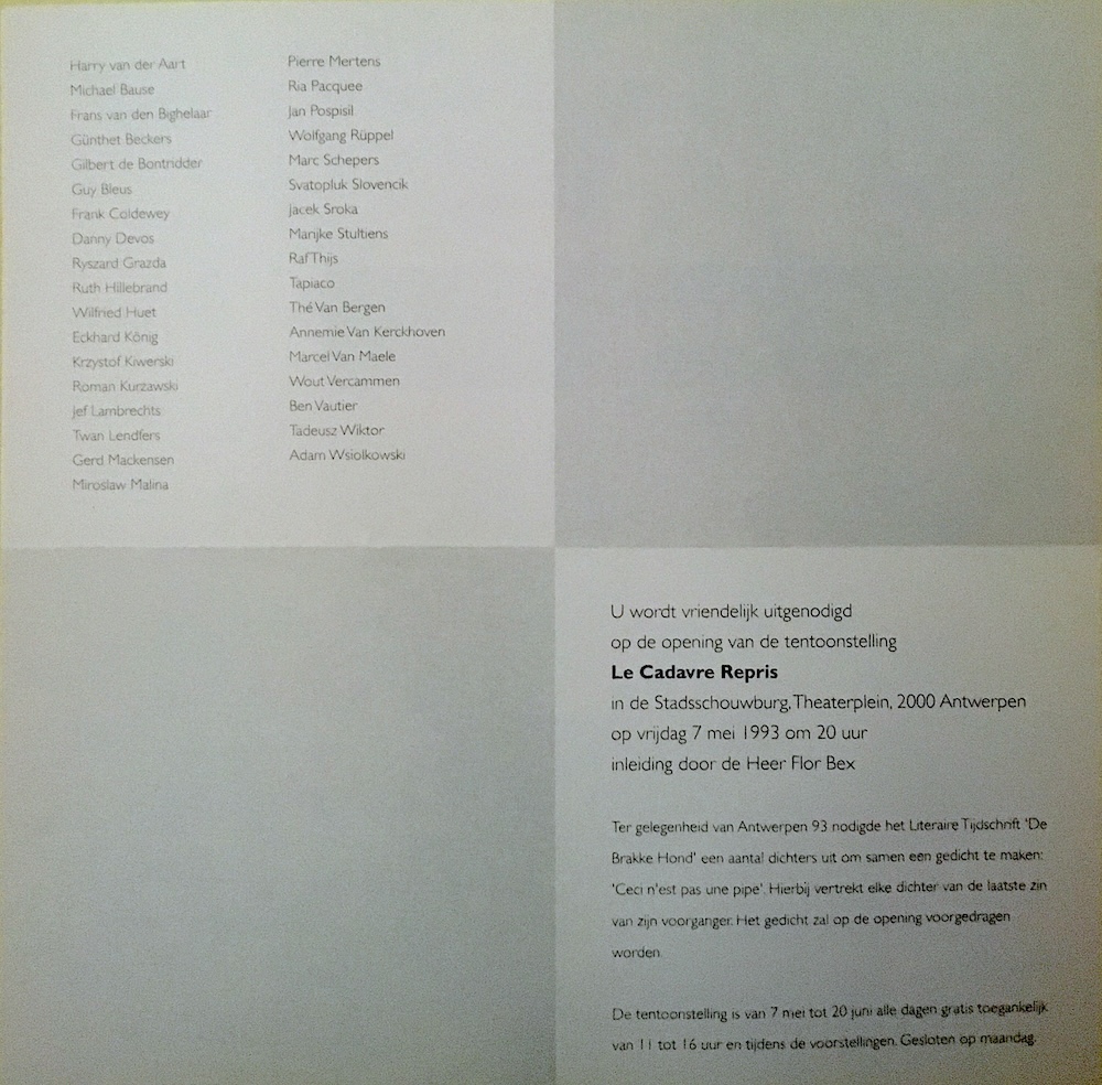 Friday 7th of May 1993 -> Sunday 20th of June 1993 in Stadsschouwburg, Meistraat 2, Antwerpen, Belgium. | ||