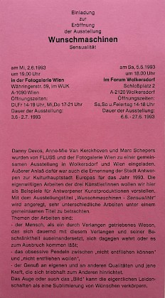 Thursday 5th of September 1996 -> Saturday 2nd of November 1996 in Galerie Annette De Keyser, Generaal Belliardstraat 19, Antwerpen, Belgium. | ||