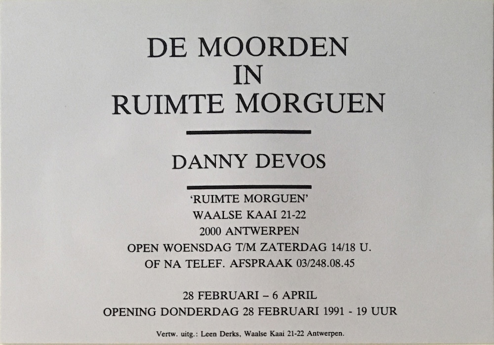 Thursday 28th of February 1991 -> Saturday 6th of April 1991 in Ruimte Morguen, Waalse Kaai 21-22, Antwerpen, Belgium. | ||