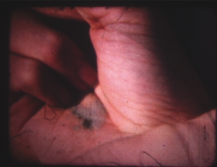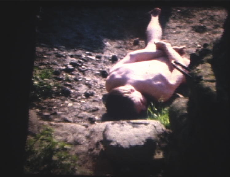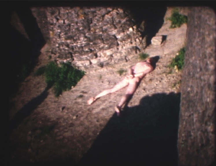 Bij een bezoek aan de Dodengang, een overblijfsel uit de loopgraven van de Eerste Wereldoorlog, vroeg ik Danny om naakt op de grond te liggen, op zijn buik met een tak tussen zijn enkels gebonden en zijn handen op zijn rug gebonden. Het was een geheim eerbetoon aan de tijd waarin we elkaar leerden kennen, en hij een performance "I Wanna be Injured" deed aan het eind van mijn tentoonstelling "-Basic" in Art Something, Amsterdam. Ik filmde een drie minuten durend Super8 filmpje van zijn performance, zonder enige montage achteraf. Enkel de energie van de plek en de geheimzinnigheid van het gebeuren bepaalden mijn handelen. When visiting the Trench of Death, a reminder of the trenches of the First World War, I asked Danny to lay down naked on his stomach with his legs open, a piece of wood tied between his ankles, his hands tied behind his back. A secret performance to pay an hommage to the time we met and when he did the performance "I Wanna be Injured" at the end of my exhibition "=Basic" in Art Something, Amsterdam. I shot a three minute Super& movie of his performance, no editing afterwards. Only the energy of the spot and the secrecy of the event defined my actions. | ||