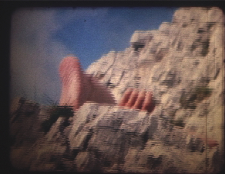 Bij een bezoek aan de Mont Aiguille waar volgens Dante de weg naar de Hel te vinden zou zijn, vroeg ik Danny om naakt op de grond te liggen, op zijn buik met een tak tussen zijn enkels gebonden en zijn handen op zijn rug gebonden. Het was een geheim eerbetoon aan de tijd waarin we elkaar leerden kennen, en hij een performance "I Wanna be Injured" deed aan het eind van mijn tentoonstelling "=Basic" in Art Something, Amsterdam. Ik filmde een drie minuten durend Super8 filmpje van zijn performance, zonder enige montage achteraf. Enkel de energie van de plek en de geheimzinnigheid van het gebeuren bepaalden mijn handelen. When visiting the Mont Aiguille where according to Dante the road to Hell can be found, I asked Danny to lay down naked on his stomach with his legs open, a piece of wood tied between his ankles, his hands tied behind his back. A secret performance to pay an hommage to the time we met and when he did the performance "I Wanna be Injured" at the end of my exhibition "=Basic" in Art Something, Amsterdam. I shot a three minute Super8 movie of his performance, no editing afterwards. Only the energy of the spot and the secrecy of the event defined my actions. | ||