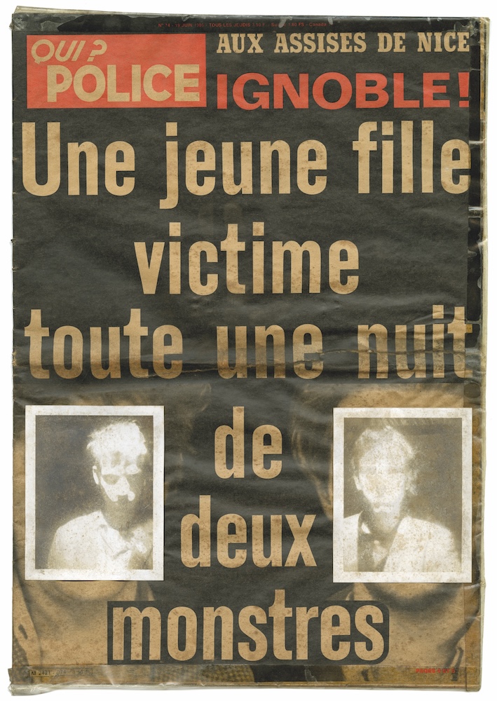 Ik imiteerde de foto’s van twee misdadigers op de kaft van een Frans misdaadtijdschrift. I mimicked the pictures of two criminals on the cover of a French true crime magazine. | ||