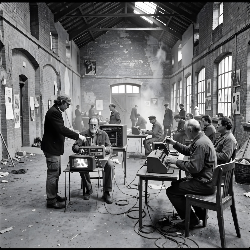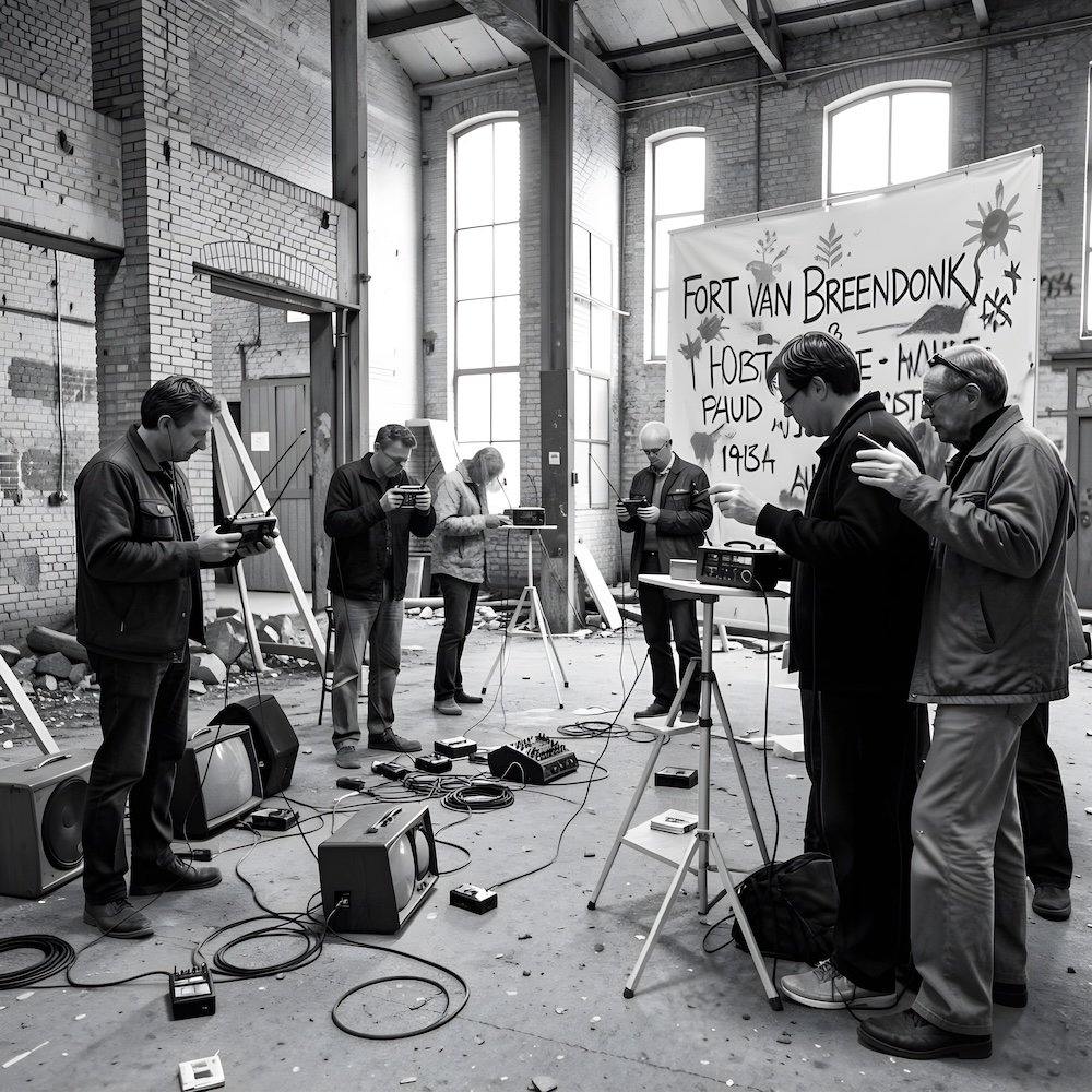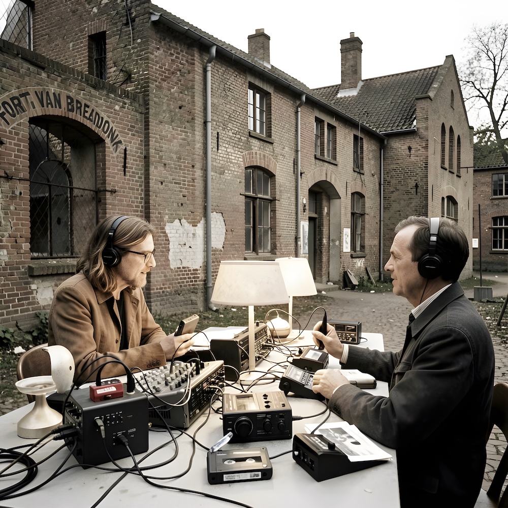 Performance art - 13 July 1984 - On various locations in the former concentration camp ‘Fort van Breendonk’ I recorded several soundperformances with Paul Hurst using portable shortwave radios and cassetteplayers. An AI image for my 'Pro-Breendonk' performance. The description above was the prompt for the generated image. An image generated by an AI Machine Learning Model Property of the artist. | ||