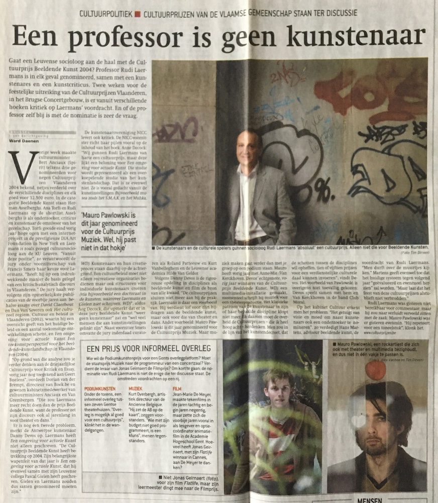 Cultuurprijzen van de Vlaamse Gemeenschap staan ter discussie Ward Daenen in De Morgen, Tuesday 8th February 2005, Belgium. | |
