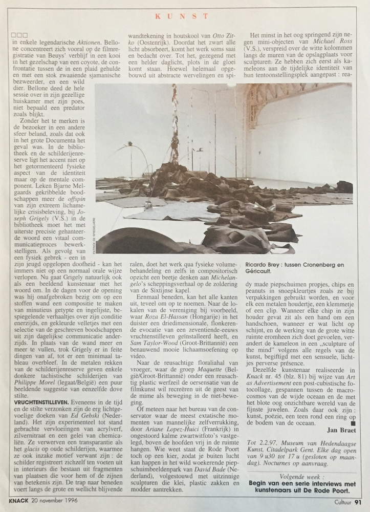 Jan Braet in Knack, Wednesday 20th November 1996, Belgium. | |
