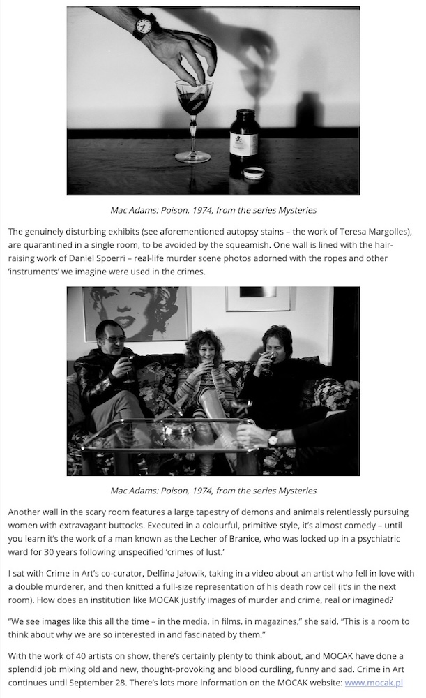 Crime in Art at Krakow’s MOCAK Jamie Stokes in The Krakow Post, Sunday 3rd August 2014, Poland. | |