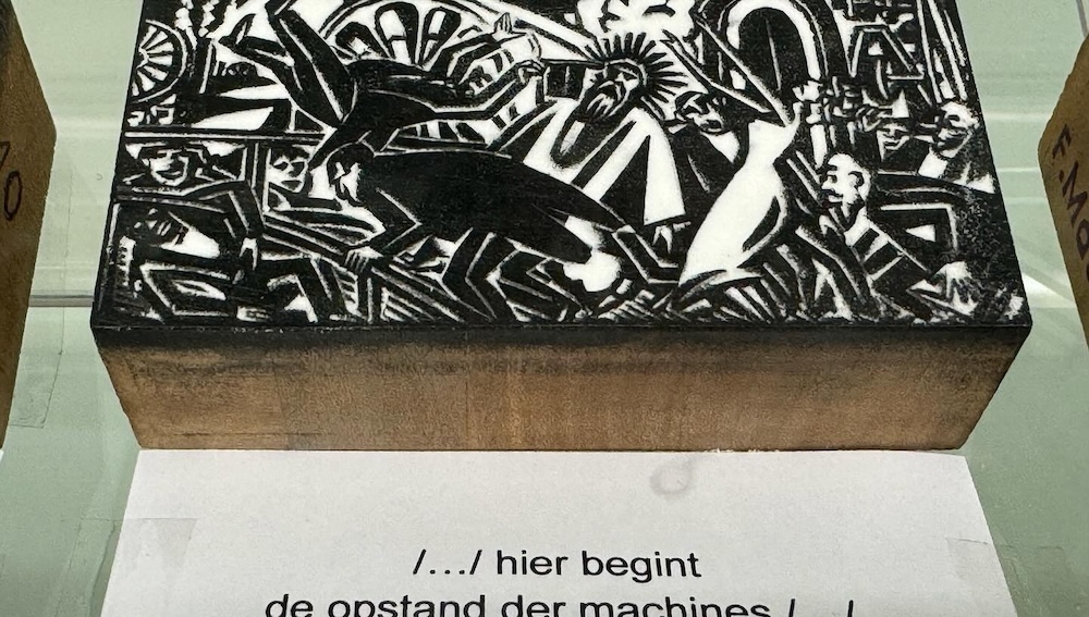 DDV's latest exhibition, at Gallery S&S (@galerie_sns) in Borgerhout, follows in the footsteps of Frans Masereel, who collaborated on Romain Roland's never-executed film project "La Révolte des Machines" a hundred years ago. Masereel then executed - by way of "storyboard" - a series of beautiful, small woodcuts that eventually found their place in a booklet published in 1921 under the same title. The booklet never got distributed...