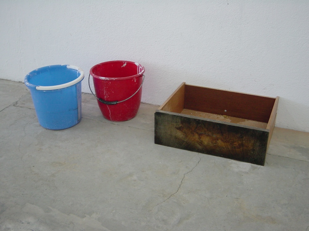 Carla AROCHA - Danny DEVOS - Boy STAPPAERTS - Narcisse TORDOIR - Walter VAN BEIRENDONCK et Luc TUYMANS - Steve VAN DEN BOSCH - Anne-Mie VAN KERCKHOVEN - Vanessa VAN OBBERGHEN commissaire : Philippe PIROTTE Danny Devos nie volontairement les lectures reçues d’œuvres clés de Donald Judd ou de Gordon Matta-Clark dans son projet du Bastard Art Gallery consistant d’œuvres d’art qui connaissent le même statut qu’un « bootleg » ou d’un remix dans le domaine de la musique. La rencontre fortuite sur une oeuvre de Donald Judd d'une montagne de sable et d'un lac consiste de sable issu d’un puits que l’artiste creuse à Anvers pour son projet Diggin’ for Gordon à un endroit inconnu référant a Office Baroque, œuvre majeure de Gordon Matta Clark faite à Anvers, et de l’eau du Lac Leman, produisant une boue dans des tiroirs rappelant les œuvres tellement connues de Donald Judd. | ||