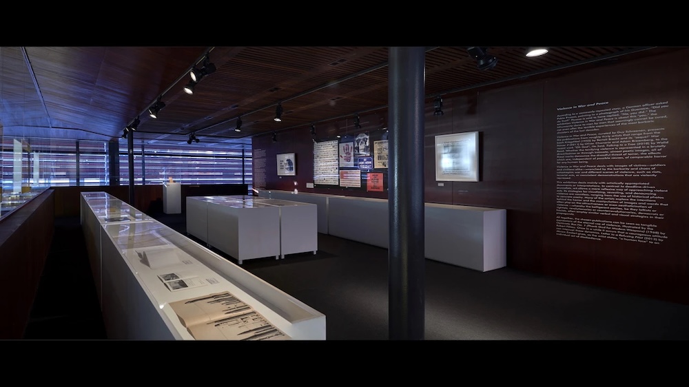According to a commonly repeated story, a German officer asked Pablo Picasso, pointing to a photograph of his Guernica, “Did you do that?” Picasso is said to have replied, “No, you did.” The exhibition Violence in War and Peace is about this “you,” the inhumanity done to men by men that seemingly cannot be cured, not even after the terrible experiences of the most barbaric disasters of the last decades. Violence in War and Peace presents the publications from roughly thirty artists that range from the book Kriegsfibel(1955) by Bertolt Brecht and its “sequel” War Primer 2 (2011) by Oliver Chanarin and Adam Broomberg, to the recent work “Oh God”, He Said, Talking to a Tree (2010) by Walid Raad. Whether the terrifying violence is represented in a brutally direct fashion or through intimate, almost poetic images, all of these works denounce the dreadful threat of terror, the effects of which are, independent of possible causes, of comparable horror for any human being. Violence in War and Peace deals with images of victims—soldiers and civilians alike—wrenched by the barbarity and chaos of catastrophic war and different scenes of violence, such as riots, terrorist acts, or nonviolent demonstrations that are violently repressed. This exhibition deals mainly with artistically appropriated documents or interpretations. In contrast to deadline-driven journalists, art allows a more reflexive way of approaching violent acts. Its strategies for visualizing, revealing, and denouncing violence are countless, ranging from the use of historical photos to concrete poetry. Many of the artists explore the intentions behind the horror and the manipulation of images and words that often play on the attractiveness or even aestheticization of violence —whereby the belligerent parties, be they leftists or rightists, revolutionaries or counterrevolutionaries, democrats or fascists, often employ similar verbal and visual strategies in their propaganda. All together, the chosen publications can be seen as tangible expressions of the eternal use of violence, illustrated by the Optimistic Box No. 1 (Thank God for Modern Weapons) (1968) by Robert Filliou. Once in a while it occurs that a courageous attitude can interrupt those dynamics. Letter to a Refusing Pilot (2013) by Akram Zaatari gives, as the artist states, “a human face” to an individual act of disobedience.
