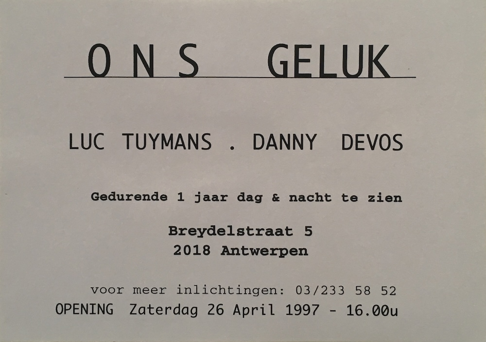 Saturday 26th of April 1997 -> Sunday 26th of April 1998 in Breidelstraat 5, Breidelstraat 5, Antwerpen, Belgium. | ||