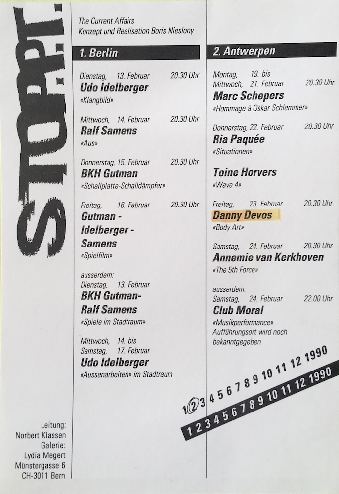 on Friday 23rd of February 1990 in Galerie Lydia Megert, Münstergasse 6, Bern, Switzerland. | ||
