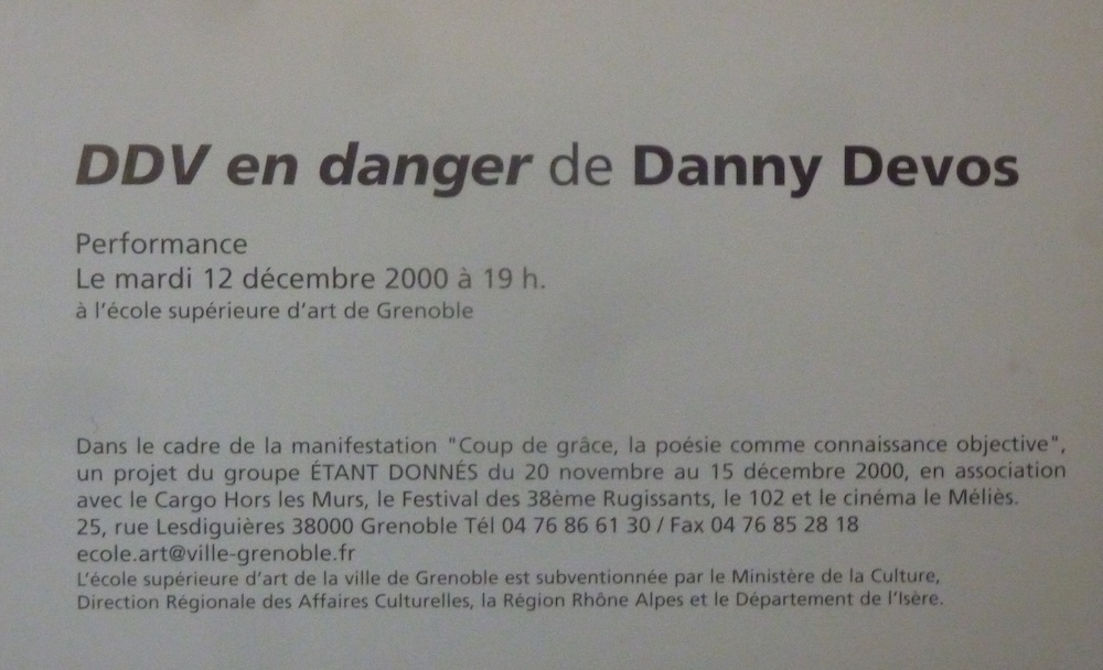 on Tuesday 12th of December 2000 in Ecole Supérieure d'Art,, 25 Rue Lesdiguières, Grenoble, France. | ||
