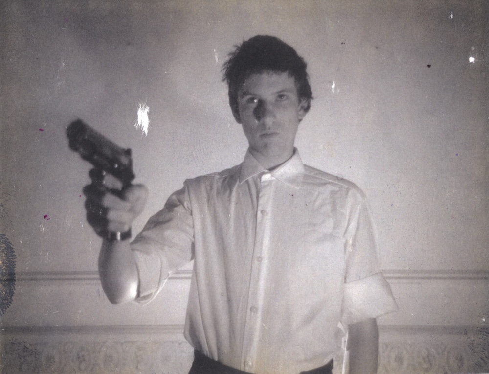 Tijdens een optreden van Etat Brut stond ik voor een filmscherm en gooide voortdurend mijn rechterbeen omhoog. Aan mijn linkervoet was een touw bevestigd waaraan iemand op een onbepaald moment trok. Ik liep een hersenschudding op. During a concert by Etat Brut I was standing before a filmscreen and threw my right leg as high as I could several times. To my left foot a rope was fastened at which somebody pulled at a non-defined moment. I suffered a concussion of the brain. | ||