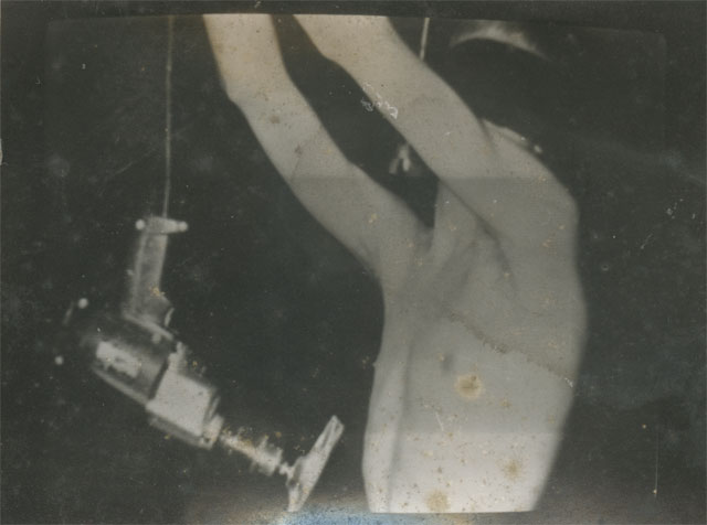 Terwijl de Simpletones hun muziek speelden liep ik geblinddoekt rond een draaiende boormachine. While the Simpletones played their music I walked round a live power-drill blindfolded. | ||