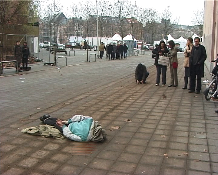 ‘Once Upon a Time... een blik op kunst in België in de jaren negentig’ was een tentoonstelling van de collectie hedendaagse Belgische kunst die Cera Foundation gedurende 5 jaar mecenaat wist te verzamelen. - Ik trok een zak over mijn hoofd en bond mijn voeten en handen vast. Ik liet mij voorover vallen en bleef liggen. - Cera Holding is een financiële groep. De collectie hedendaagse kunst werd voornamelijk aangekocht door Paul Tanghe, Luk Lambrecht en Bart De Baere huidig directeur van het M_hka. - Na een half uur werd ik losgemaakt door Mauro Pawlowski. ‘Once Upon a Time... a look at art in Belgium in the Nineties’ was an exhibition of the collection of contemporary Belgian art which the Cera Foundation was able to put together during 5 years of patronage. - I pulled a bag over my head and tied up my feet and hands. I fell forward and lay on the ground. - Cera Holding is a financial group. The contemporary art collection was predominantly bought by Paul Tanghe, Luk Lambrecht and Bart De Baere current director of the M hka. - After half an hour I was untied by Mauro Pawlowski. | ||