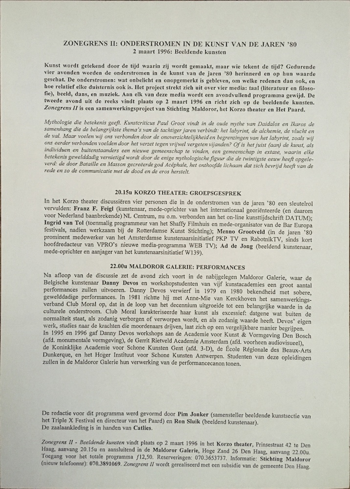 on Saturday 2nd of March 1996 in Maldoror Galerie, Hoge Zand 26, Den Haag, Netherlands. | ||
