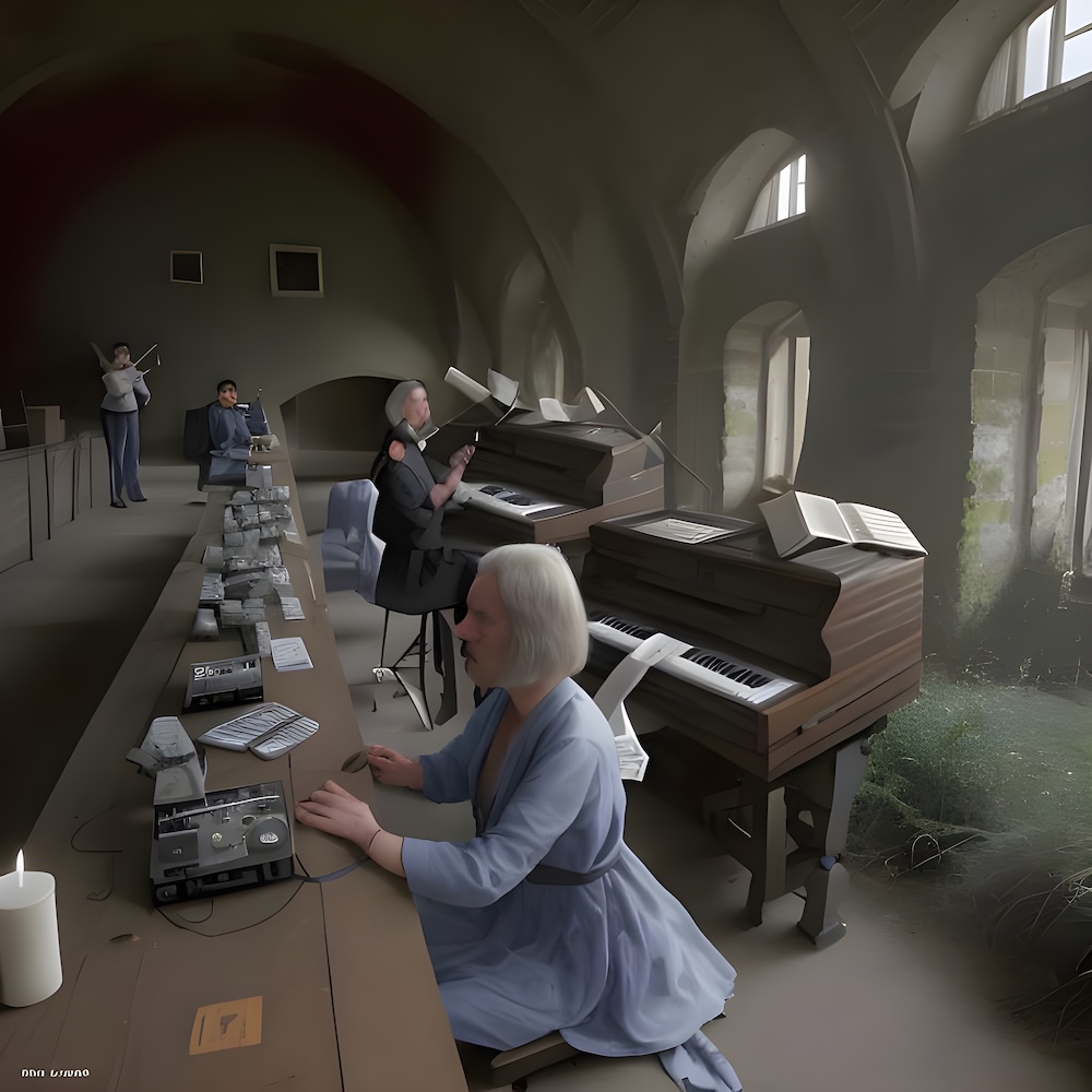 Performance art - 13 July 1984 - On various locations in the former concentration camp ‘Fort van Breendonk’ I recorded several soundperformances with Paul Hurst using portable shortwave radios and cassetteplayers. An AI image for my 'Pro-Breendonk' performance. The description above was the prompt for the generated image. An image generated by an AI Machine Learning Model Property of the artist. | ||