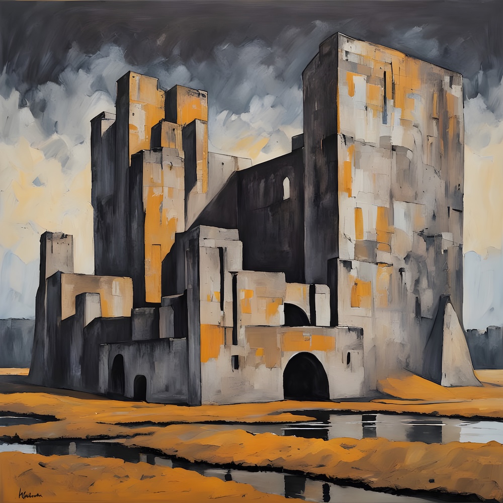 These works are inspired by the catalogue of the exhibition 'TURNER 1775-1851' of J. M. W. Turner at the Tate Gallery, London from 16 November 1974 until 2 March 1975. The titles are fed into an AI Image Generator Machine Learning Model with prompts for abstract, colourfield, brutalist, geometric paintings in hi-res images of 8000x8000 pixels. The individual pages from the list have the text from the catalogue about Turner's work. Move your mouse over an image to see the title. The catalogue was bought in a second-hand bookshop in Brussels for 4,- €.