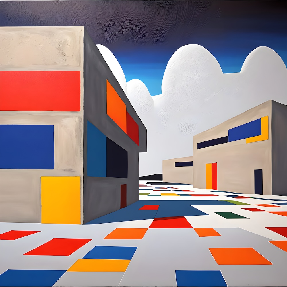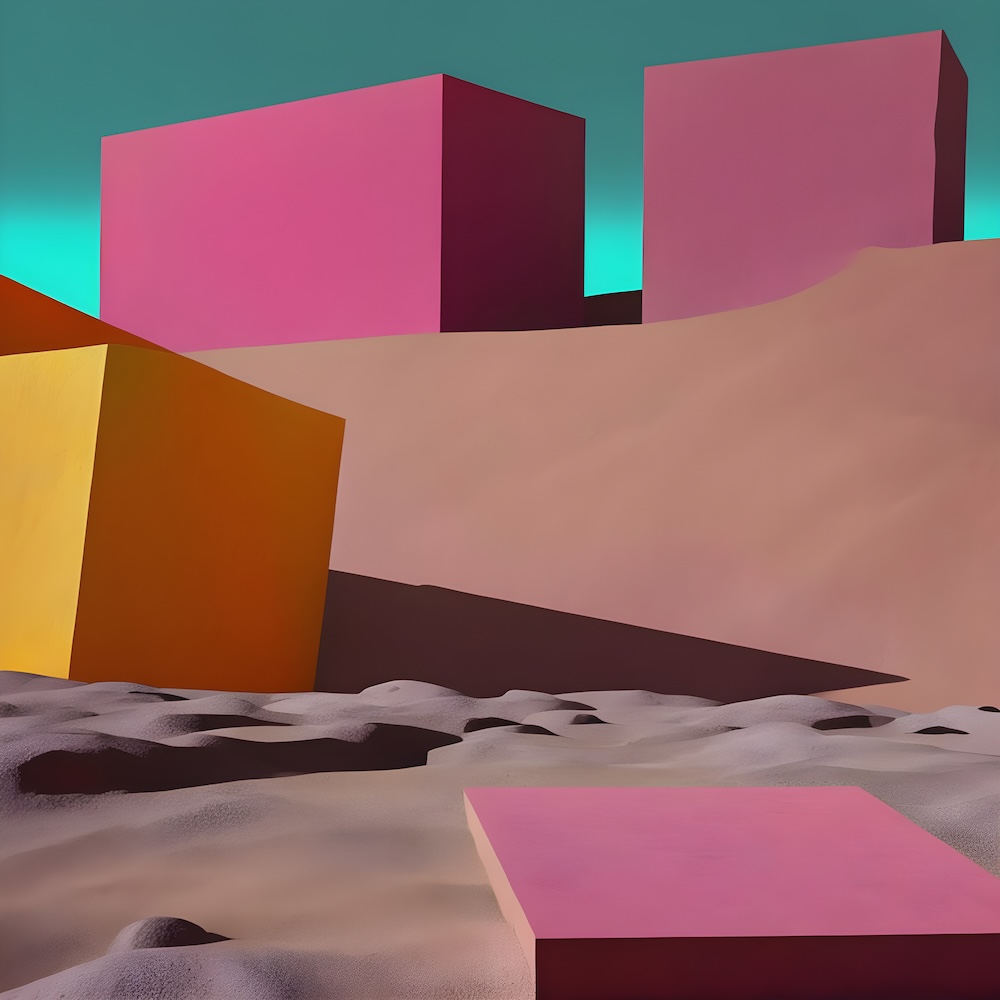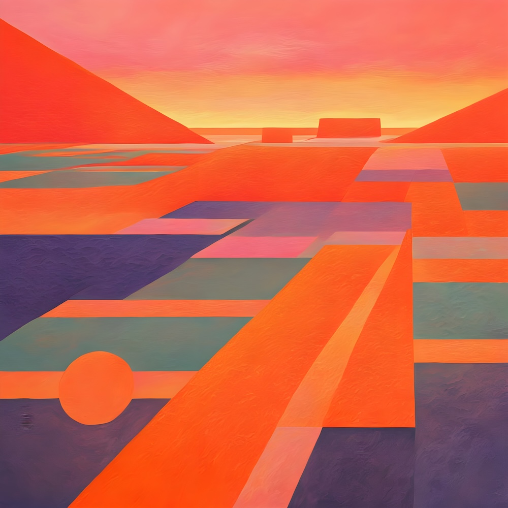 These works are inspired by the catalogue of the exhibition 'TURNER 1775-1851' of J. M. W. Turner at the Tate Gallery, London from 16 November 1974 until 2 March 1975. The titles are fed into an AI Image Generator Machine Learning Model with prompts for abstract, colourfield, brutalist, geometric paintings in hi-res images of 8000x8000 pixels. The individual pages from the list have the text from the catalogue about Turner's work. Move your mouse over an image to see the title. The catalogue was bought in a second-hand bookshop in Brussels for 4,- €.