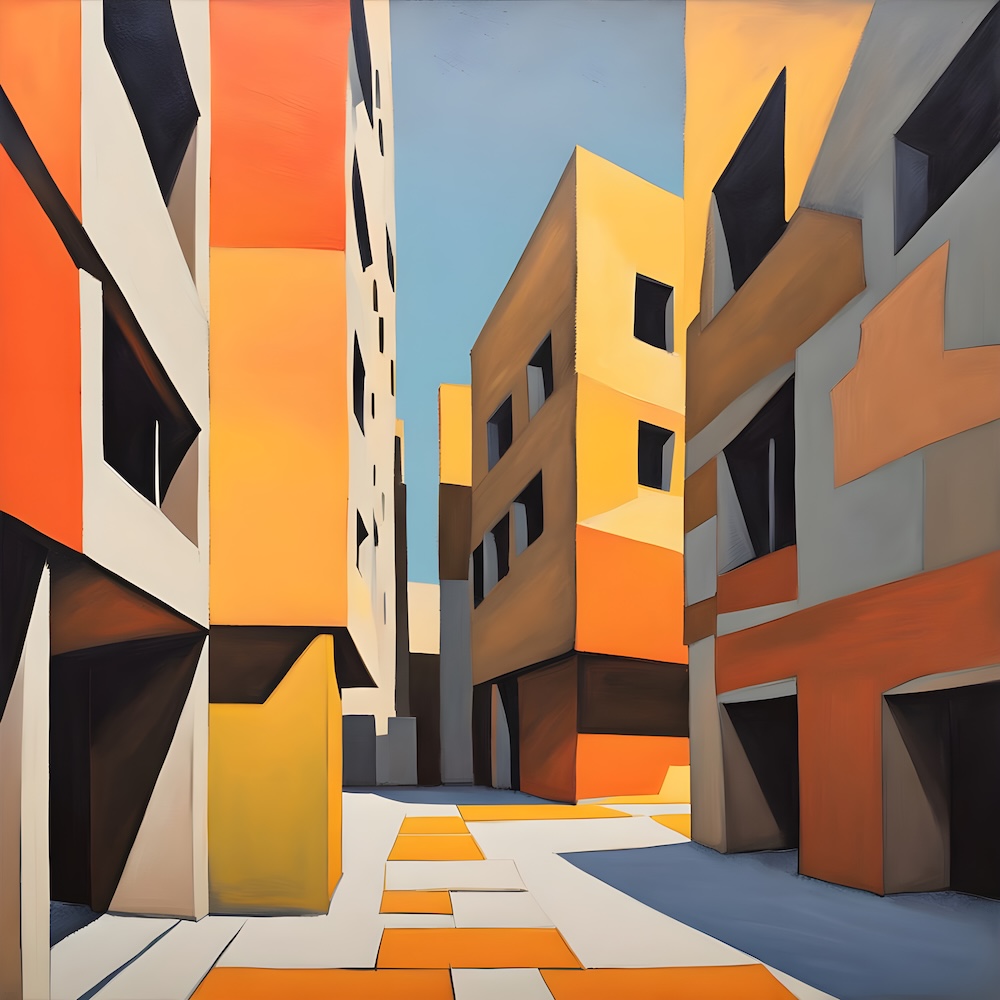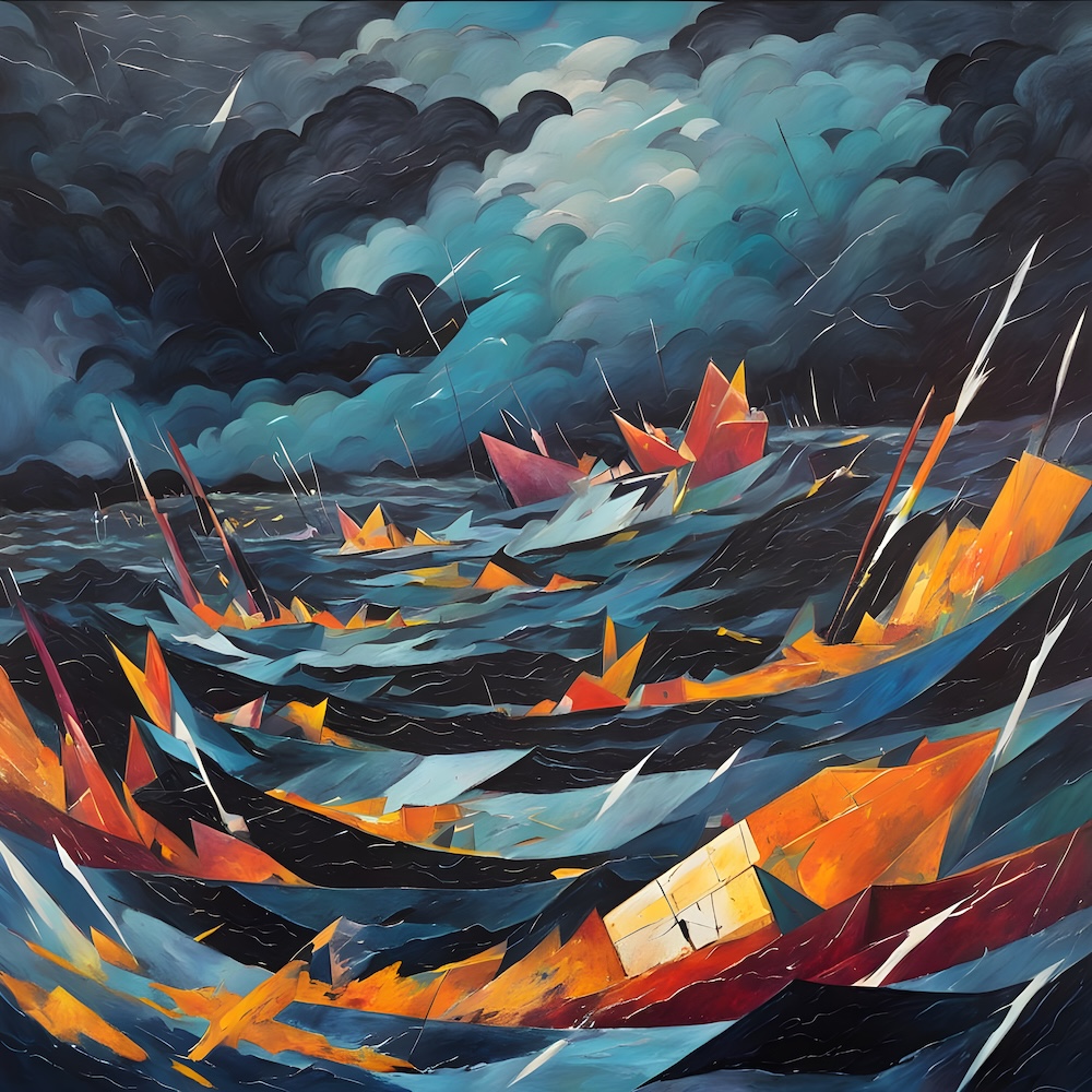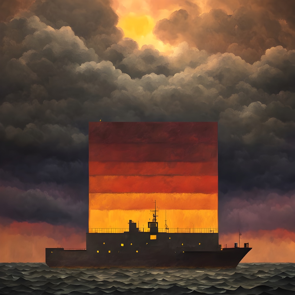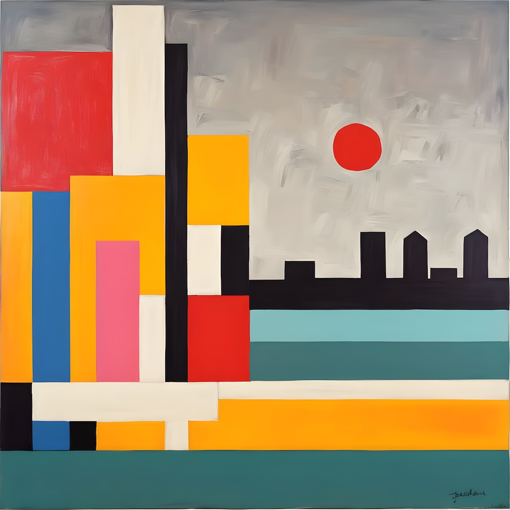 These works are inspired by the catalogue of the exhibition 'TURNER 1775-1851' of J. M. W. Turner at the Tate Gallery, London from 16 November 1974 until 2 March 1975. The titles are fed into an AI Image Generator Machine Learning Model with prompts for abstract, colourfield, brutalist, geometric paintings in hi-res images of 8000x8000 pixels. The individual pages from the list have the text from the catalogue about Turner's work. Move your mouse over an image to see the title. The catalogue was bought in a second-hand bookshop in Brussels for 4,- €.