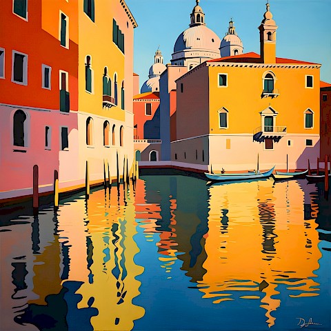 Apparently bought at the Academy by Edwin Bullock of Handsworth. One of the three Venetian pictures on view with Nos.534 and 535, all characterised by the Spectator for 13 May as 'beaming with sunlight and gorgeous colour, and full of atmosphere; though, as usual, all forms and local hues are lost in the blaze of effect.' An image generated by an AI Machine Learning Model Property of the artist. | ||