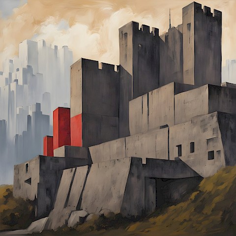 643 - (Abstract-1.8) (Colourfield-1.8) brutalist painting Norham Castle on the Tweed 24 November 2025 (brutalism-1.8) geometric dystopian | |